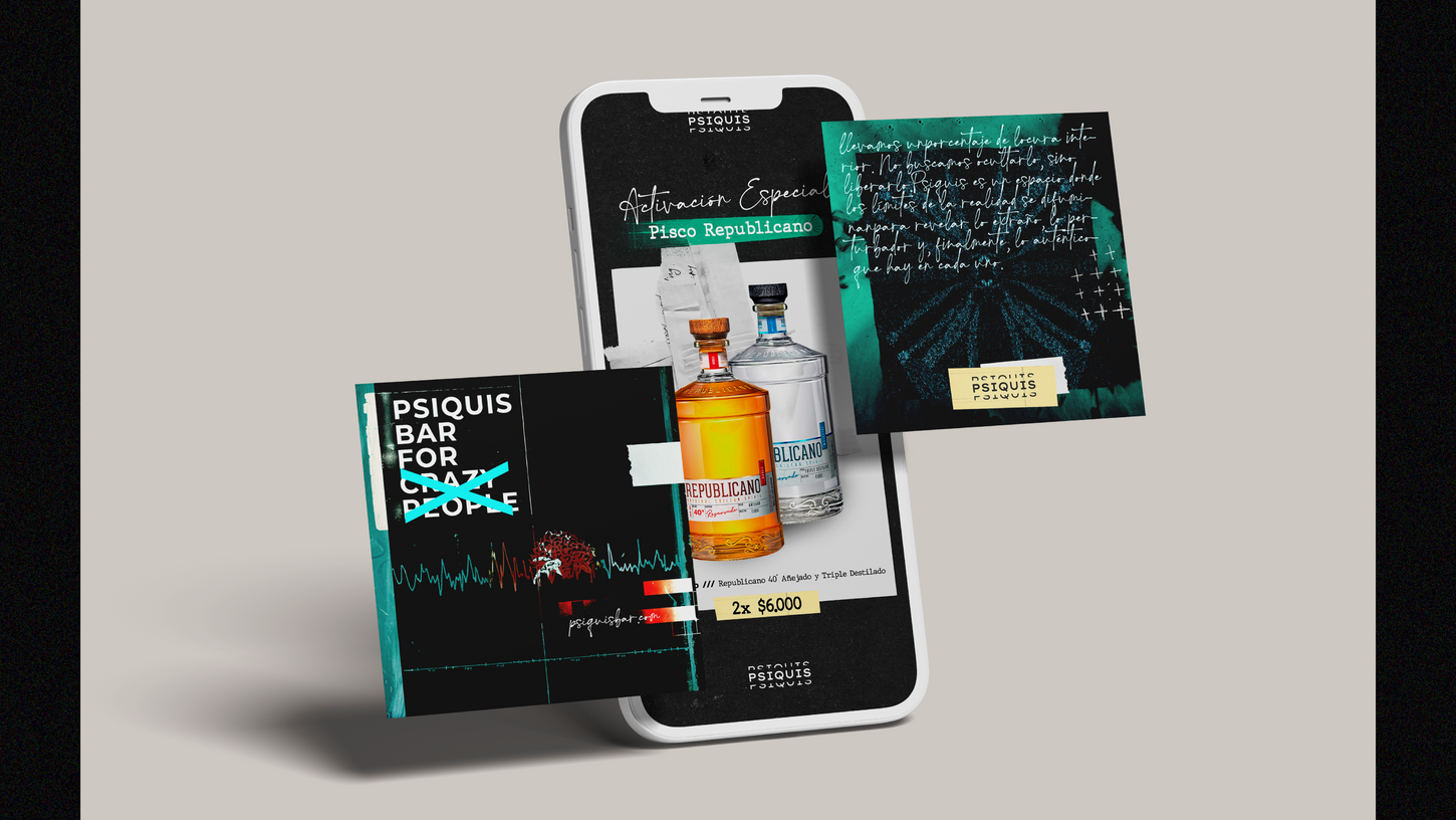 El diseño estratégico se enfocó en fusionar elementos abstractos con un discurso visual cargado de simbolismo, manteniendo un estilo coherente que atrapa la atención del público objetivo. Esta identidad renovada no solo redefine el carácter del bar, sino que también posiciona a PSIQUIS BAR como un espacio que desafía los límites de la realidad a través de composiciones visuales impactantes.